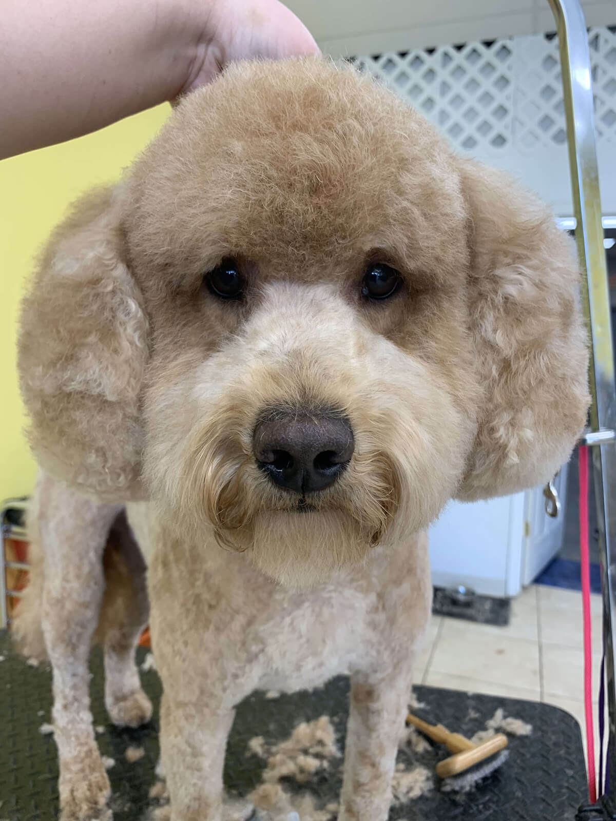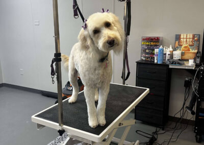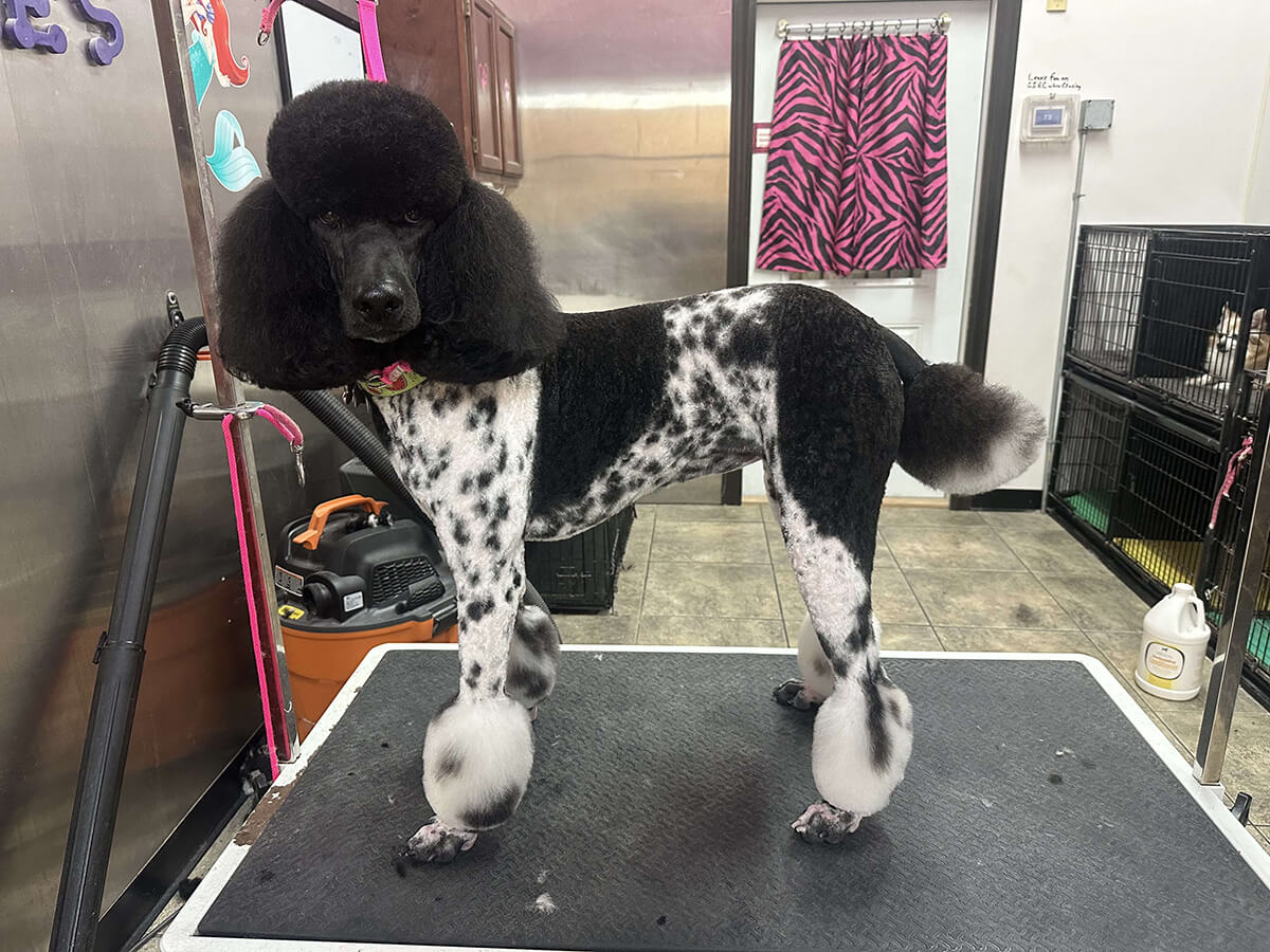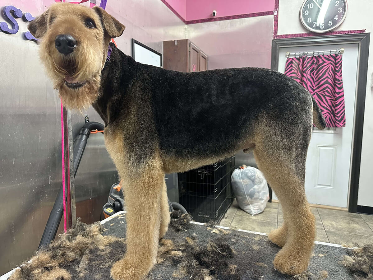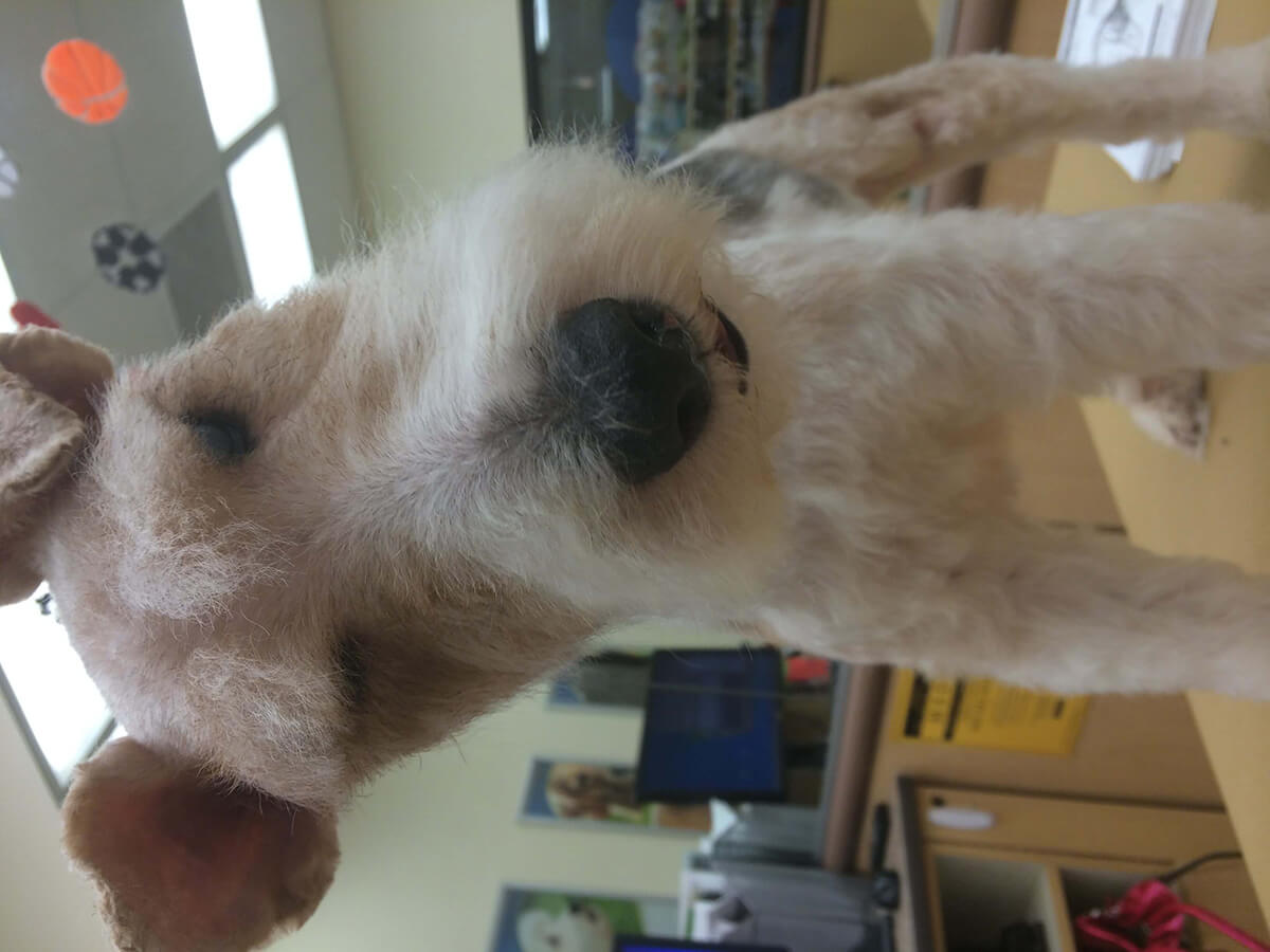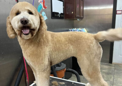 Matting is when hair gets tangled up tightly. Debris, dirt, and dander get trapped underneath which can lead to skin conditions or irritations. When matting is severe enough it can cause bruising, sores, or hot spots to develop after the matting is removed. As groomers our job is to protect the safety of your pet at all costs which means we have to cut under the matting. If we cut through the matting the dog can easily get cut because skin gets pulled into the matting. Most hairy dogs need to be groomed a minimum of every 8 weeks for a shorter cut. If the client wishes to have a longer cut that is maintainable, but the dog should be groomed every 4 weeks so we can work together to keep their coat healthy and mat free.