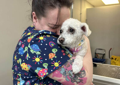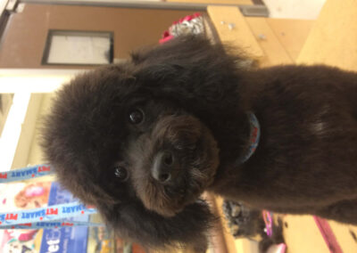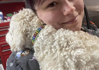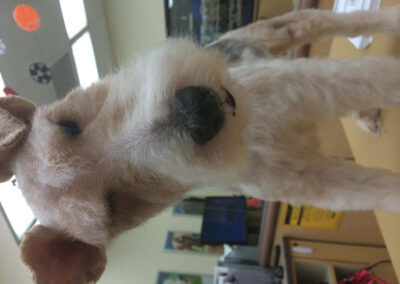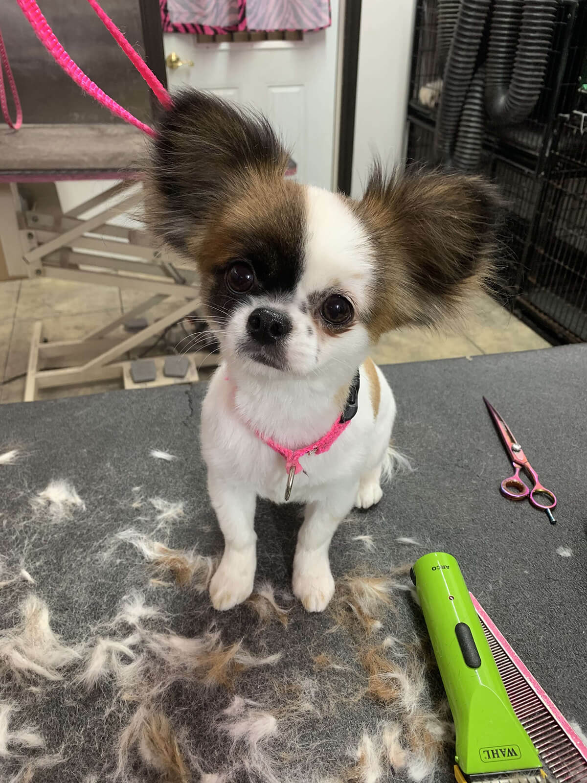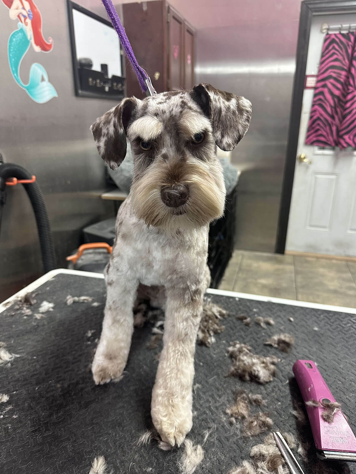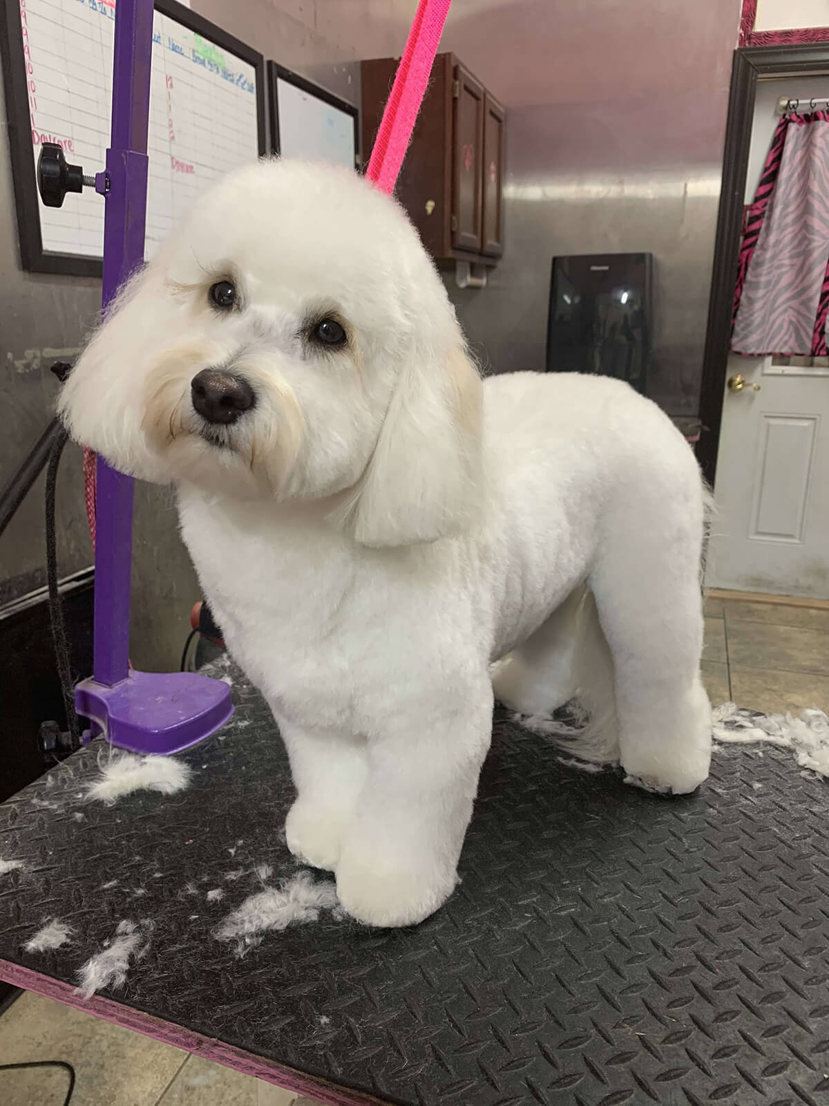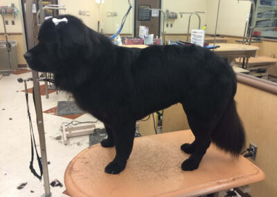 Matting is when hair gets tangled up tightly. Debris, dirt, and dander get trapped underneath which can lead to skin conditions or irritations. When matting is severe enough it can cause bruising, sores, or hot spots to develop after the matting is removed. As groomers our job is to protect the safety of your pet at all costs which means we have to cut under the matting. If we cut through the matting the dog can easily get cut because skin gets pulled into the matting. Most hairy dogs need to be groomed a minimum of every 8 weeks for a shorter cut. If the client wishes to have a longer cut that is maintainable, but the dog should be groomed every 4 weeks so we can work together to keep their coat healthy and mat free.