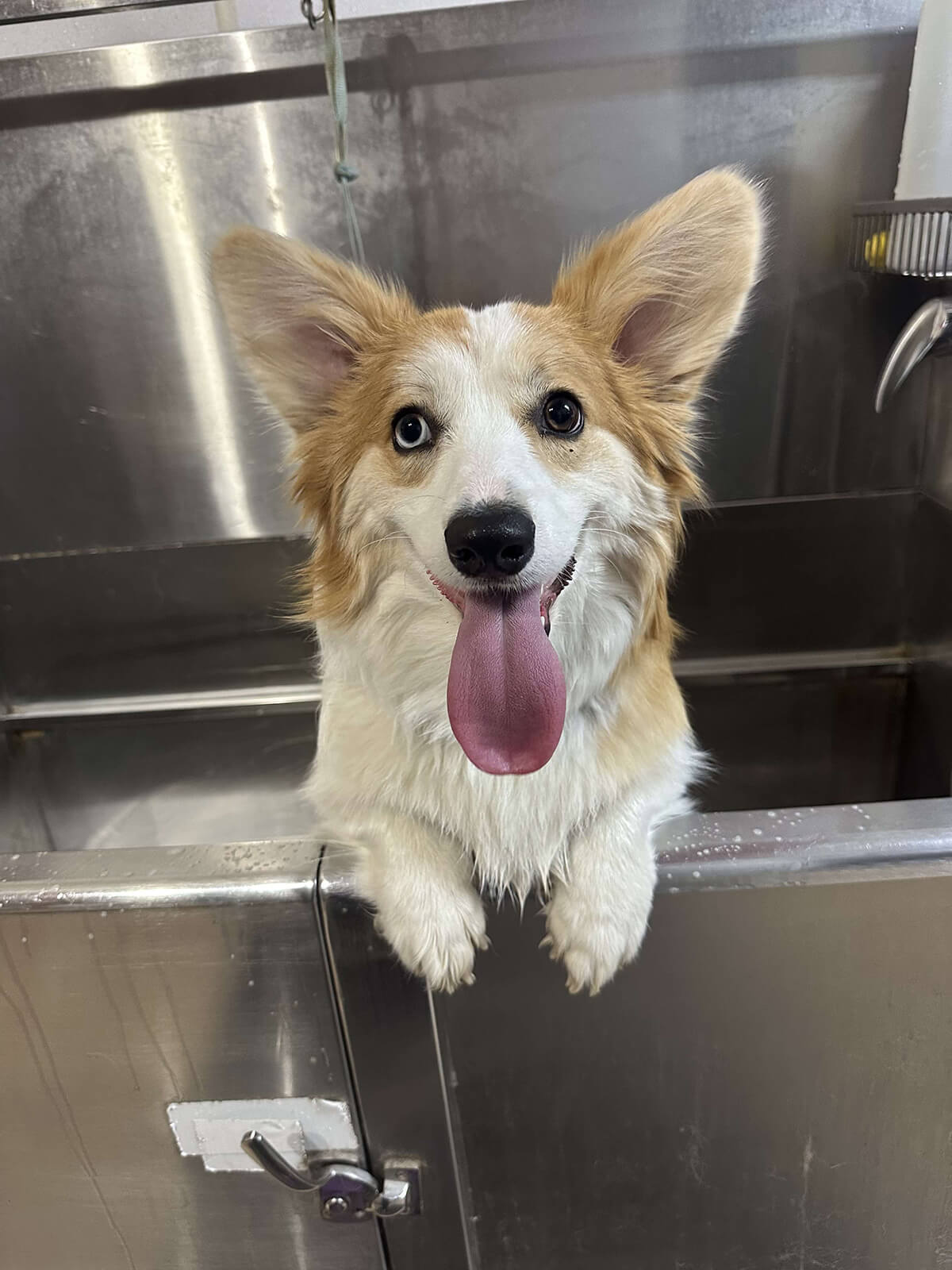 Our Bath & Tidy grooming service includes a bath, nail clipping and grinding, ear cleaning, gland expression for small dogs, a choice of bows or bandanas, cologne, and a face, feet, and sanitary trim.