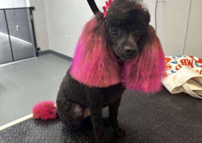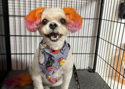 YES! All of the products that I use in my shop are specifically designed for dogs, are 100% non-toxic, and naturally derived from plants. I also only do color on dogs that have healthy skin and are well behaved for the grooming process. The lightener that I use is a peroxide base that never touches the skin. Coloring services take time and I charge based on the amount of time, products used, and difficulty of the design. Remember although I absolutely love to do this I still have to charge for my time.