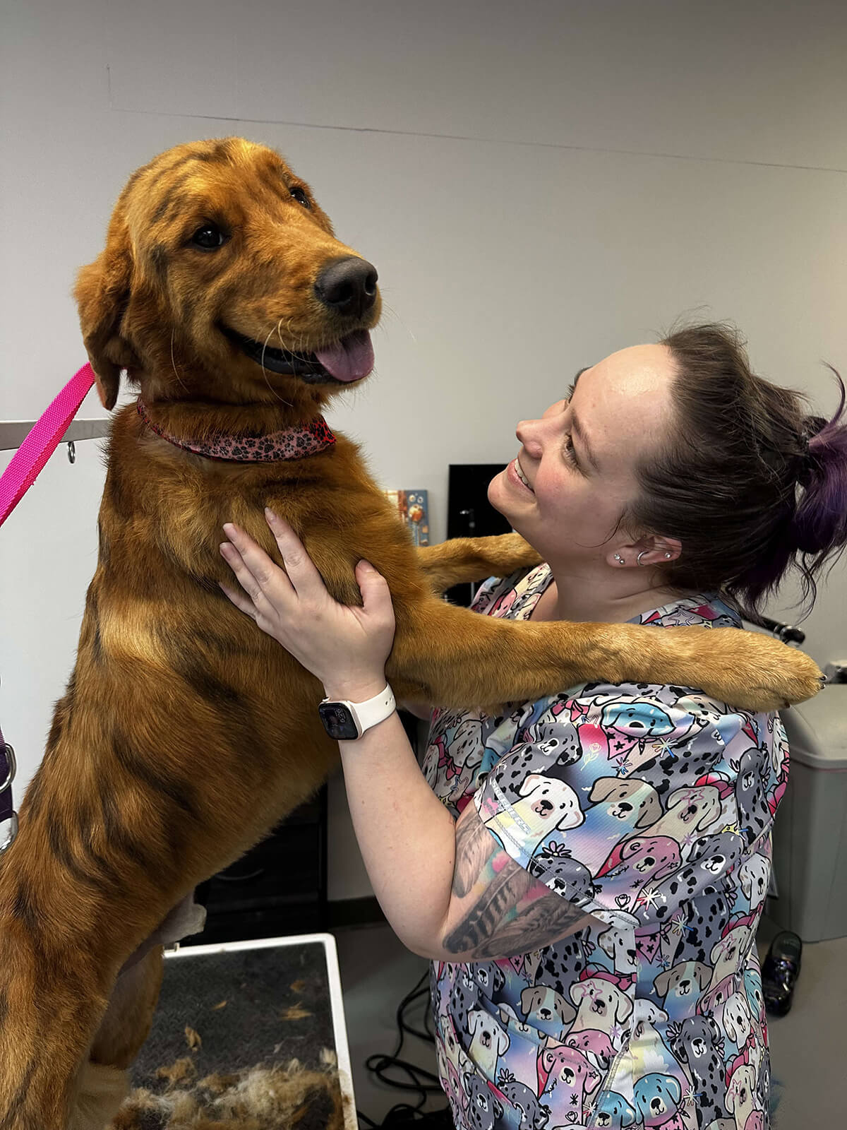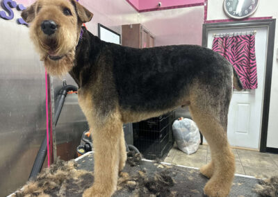 A Pet De-Shed grooming add-on helps reduce excessive shedding in pets by using specialized tools and techniques to effectively remove loose fur and the undercoat, all while ensuring the safety of the pet’s skin and topcoat. This service is particularly beneficial for breeds that are prone to heavy shedding. It can help minimize allergens in the home, improve the health of the pet’s coat, and enhance their overall comfort.