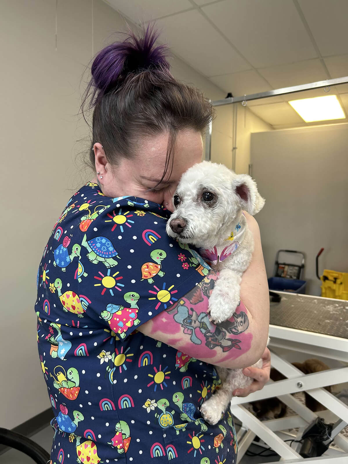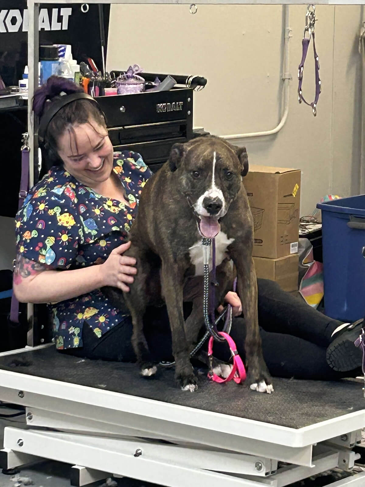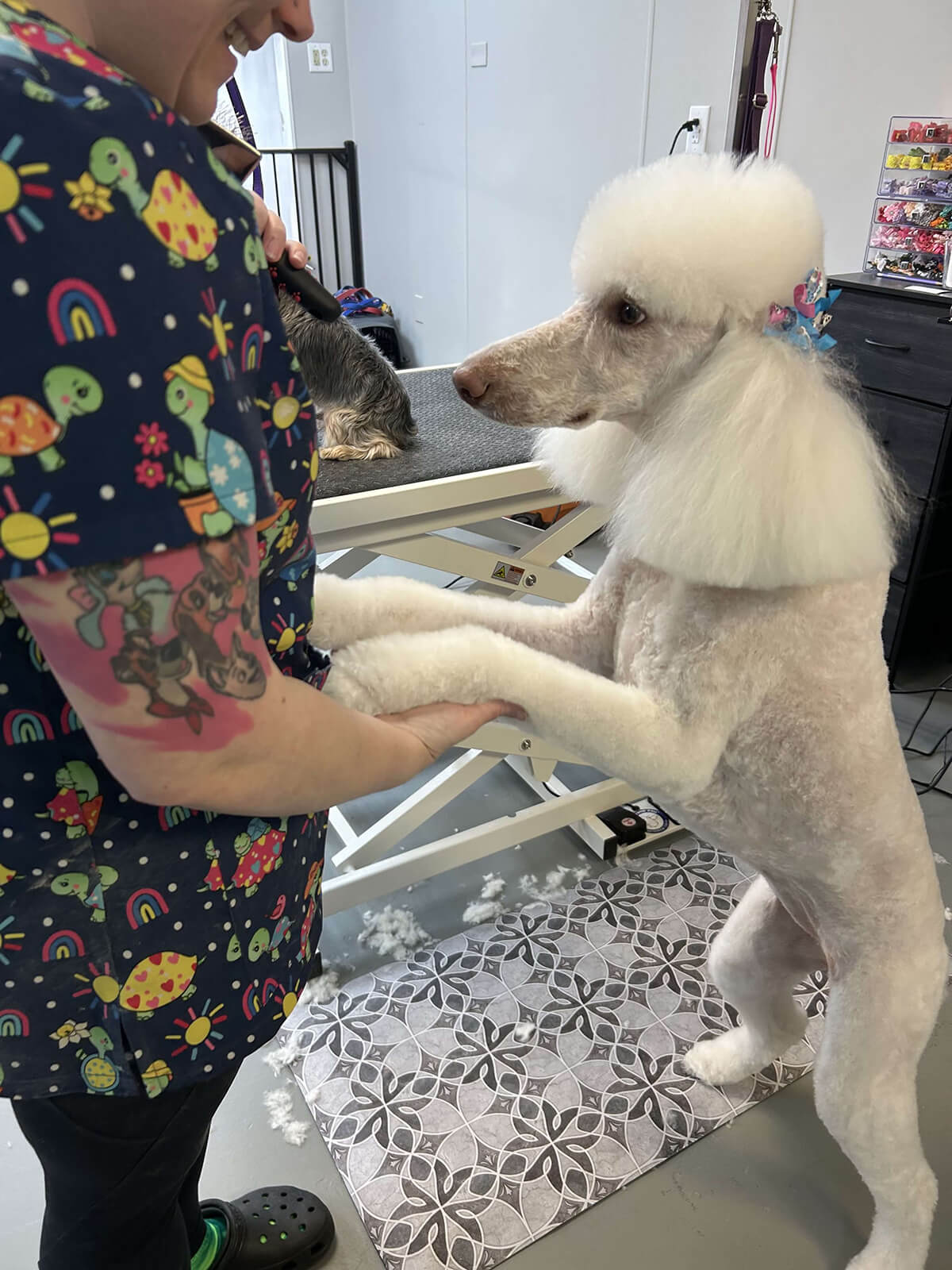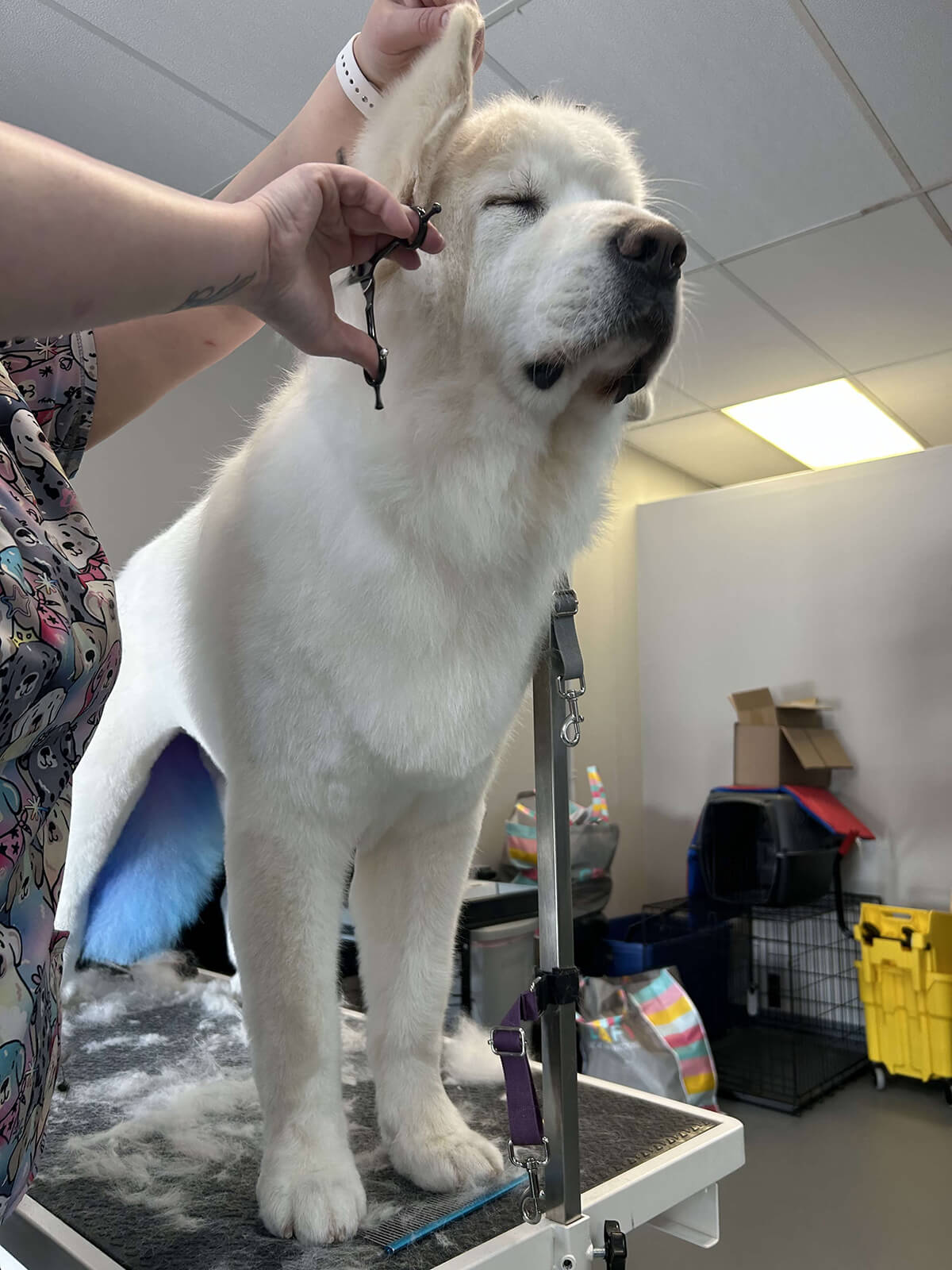 A lot of people don’t take into account that not only do we cut your dogs hair, we are giving a full bath, blow dry, clipping and grinding nails, cleaning ears, expressing glands (when needed) and giving them our undivided attention to keep them safe. We get peed on, pooped on, glanded on, bit, scratched, and so many other things. I love what I do but my body hurts and it’s not an easy job. We do so much more for your babies then most people ever realize.