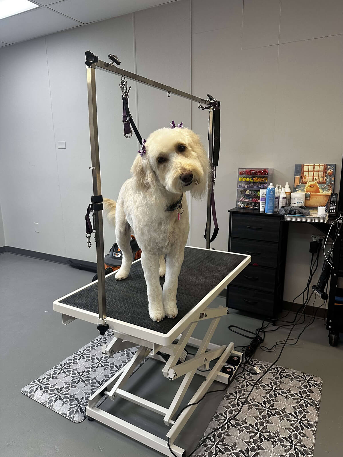 Our premium grooming service includes a bath, nail clipping and grinding, ear cleaning, gland expression for small dogs, choice of bows or bandana, cologne, and a full body cut of your choice.